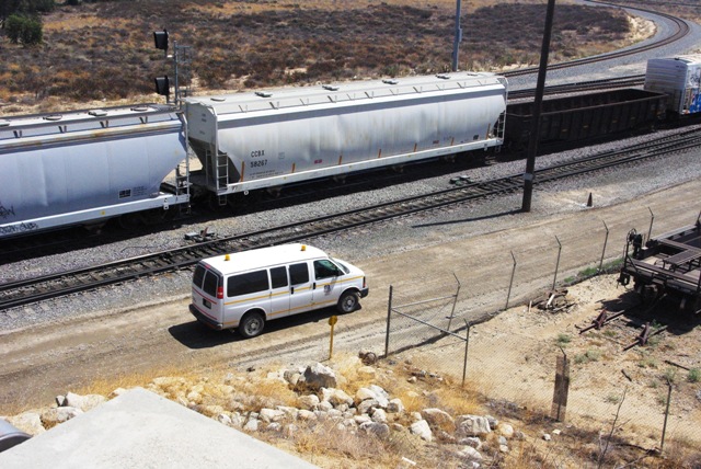 UP pickups are ubiquitous:     UP and other railroads use Renzenberger to pick up and deliver crews -- I think this is a Chevy van, I don't know if anyone makes a model:     Seems like this would be a drop-dead detail if anyone could come up with something close. However, the railroads use their own vans     And also unmarked white SUVs     Which are also used by security. Another issue is figures for workers, passers-by, and railfans.     Rail workers these days all seem to wear reflective green or orange vests, and the supervisors wear white hard hats. Bachmann has had a set of modern rail workers 160-33106 out for a year or so, and Walthers has a set 949-6013 coming in September, though I'm not sure if I like either the colors or the poses.