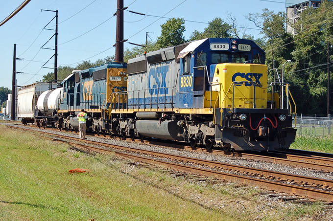 A shot of Millville Yard and then MI-21 with two CSX locos,2771 GP38-2 and 4228 GP40-2 coupling up to NS 8907 a D9-40CW to become MI-61 for the trip to Camden.
