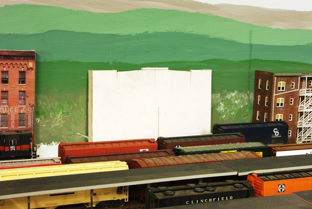 It's giving me a better idea of where I need to go with the backdrop. The area more or less above the PC baggage car needs to be basically the rear of a terminal headhouse. From that point to the middle will be urban-industrial.