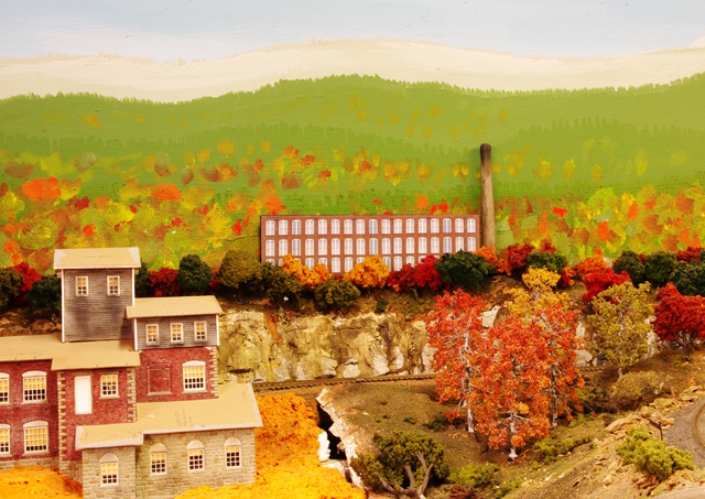 I've seen layouts on other forums that use Kingmills glued directly to the wall, and I don't think they work as well. Seeing the way Dr Wayne and Mr Nutbar have done them, where they "pop" on low-relief forms, is what inspired me to start using Kingmills myself. Now I have to figure out how to fill the gap lower down between the Forley and the Walthers Plant No 4 or whatever it is.