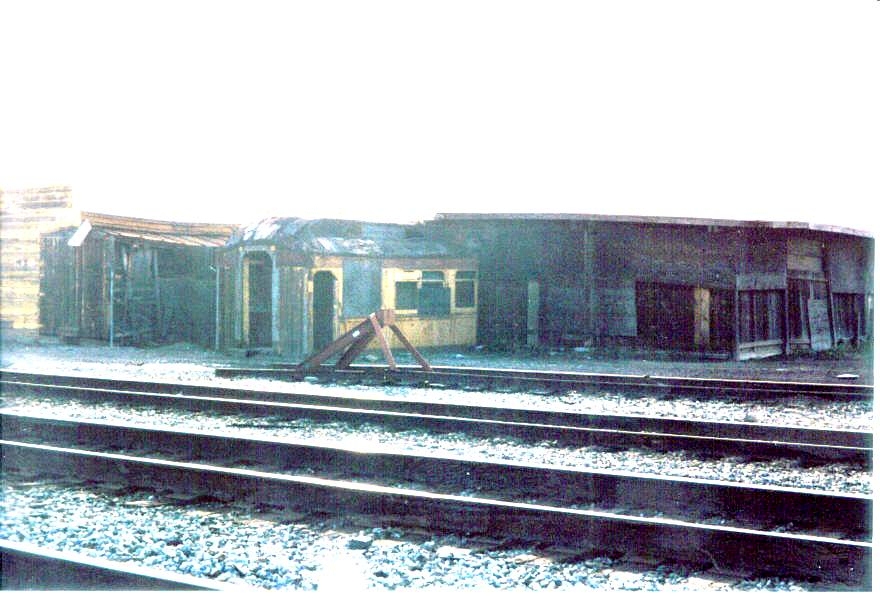 Certainly they're good candidates for covering the open area where the wallboard wasn't. But I also need to get back to the black styrene carbodies in the lower right center just behind the roundhouse. These are patterned after some carbody structures I found on the SP at Suisun-Fairfield, CA: