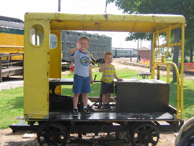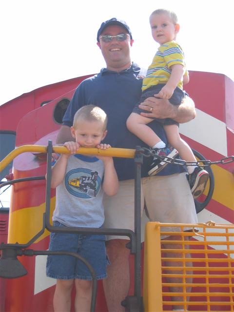 Ok, here are a couple pics of me and my 2 boys at the Illinois Railway Musuem. These pics are about 3 1/2 years old, so I haven't changed much, but wow have the boys grown! The pic with my oldest and I in the cab, I believe that we were in a ATSF FP-45, but I'm not sure. As for what the little yellow doo-hicky is that the boys were standing in, I have no idea, but I did like the Pullman troop carrier car that was behind them!