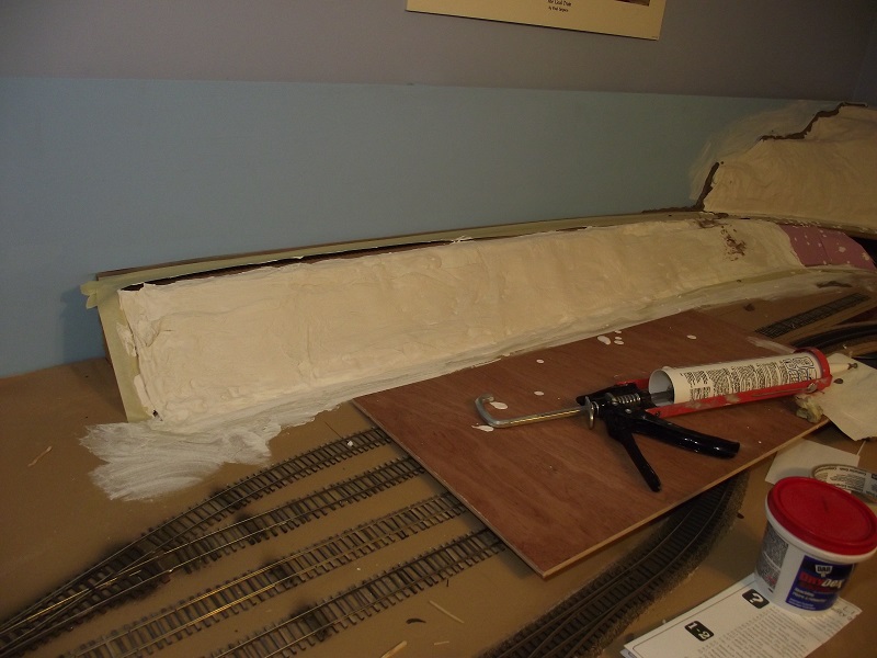 During this time I ran out of Hydrocal so I went to a nearby building supply dealer and picked up a 50lb. bag. That should be enough for the entire layout, plus some. I did have a strange thing happen when the first hardshell use of the new bag turned a light gray instead of white, my next application was white.