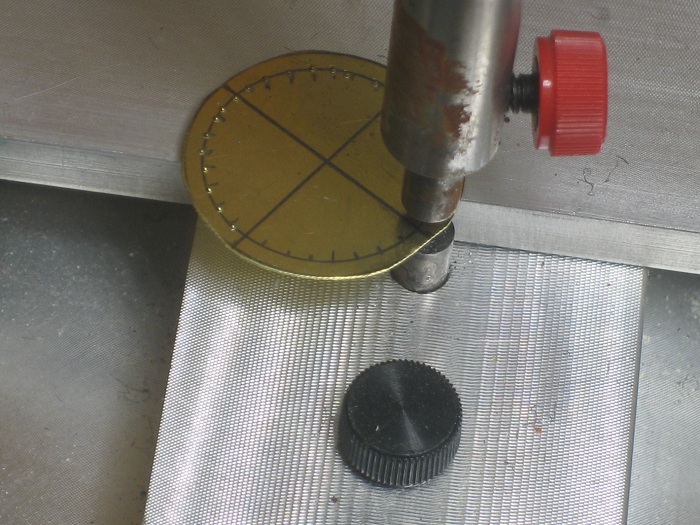 This was then cut out with some snips. I then drew another smaller circle centered in the box front with evenly spaced hash marks on it. This is my guide for a row of rivets located there.     The rivets were then punched in with my riveter.