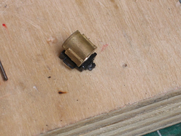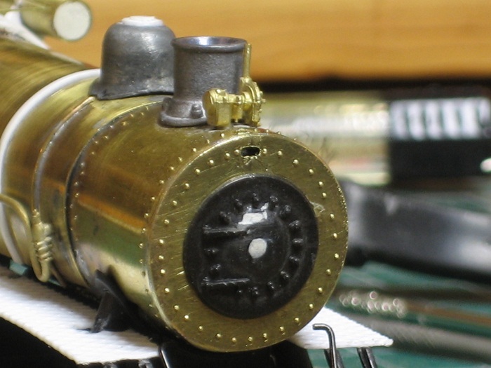 Next you wipe off the smoke box front with some rubbing alcohol to get rid of any flux residue. You do this so that you can glue the door from the original box front in place with some CA glue.