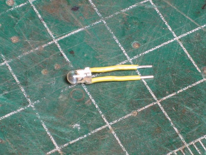 With all this done I striped some insulation from some phone wire ans slid it over the leads on the LED to keep it from shorting out against each other or the headlight casting.