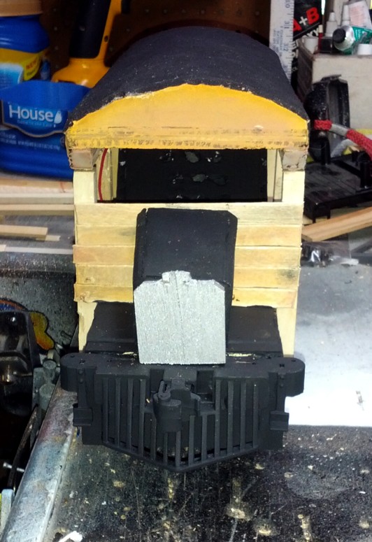 I was going to round off all the edges and score the front panel to represent a hood  Therefore this would be the final height.