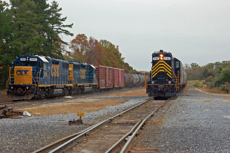 Conrail Shared Assets MI-61 enters Millville while Winchester and Western waits on the yard lead. October 14, 2009.