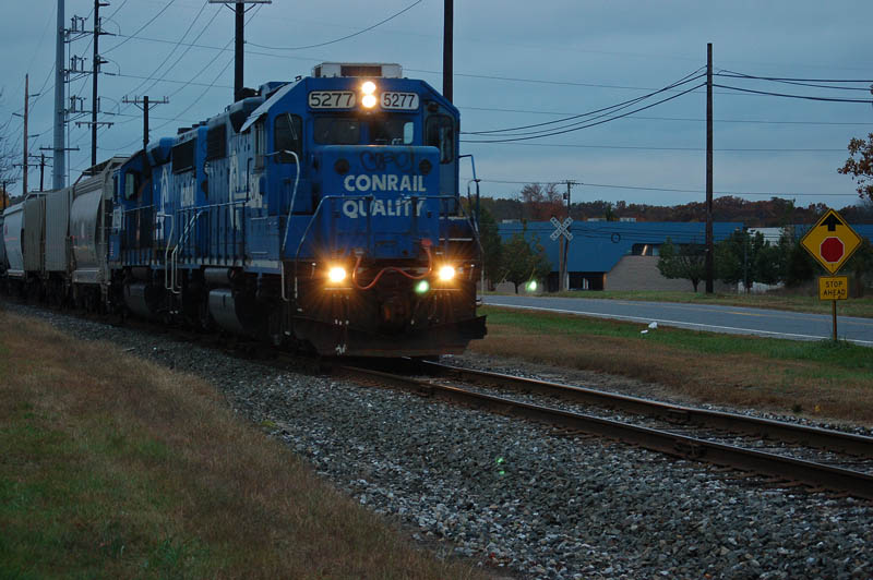 NS 5277 leads MI-61 thru Vineland, NJ on a transfer run to Pavonia Yard in Camden on October 29, 2009.