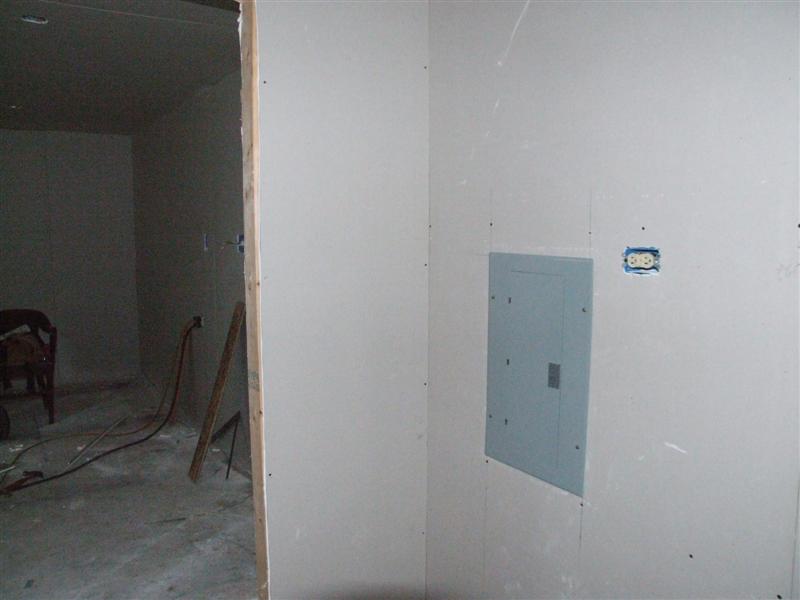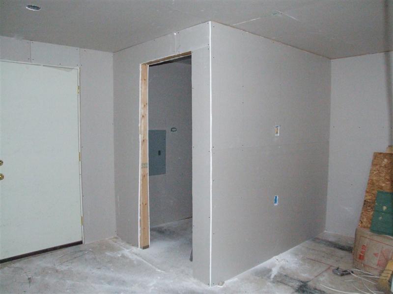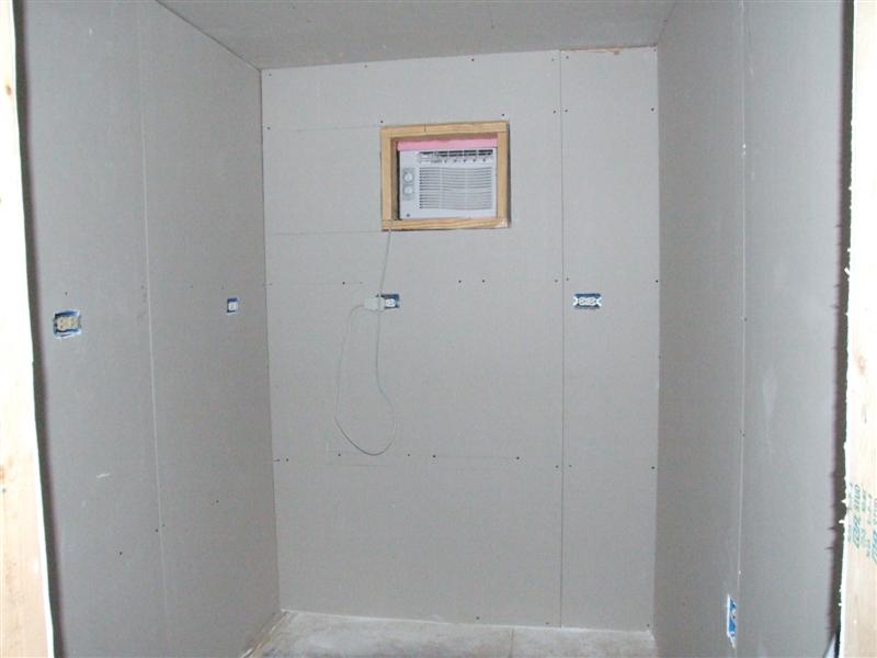 I installed a little 5000 BTU air conditioner in the room area on Tuesday, and turned it on to make sure it would work. With all the insulation in the building just the little guy kept the whole building 20 degrees cooler then the out side, so I finished the drywall in comfort. I have a much larger portable unit I will install with a dryer vent.