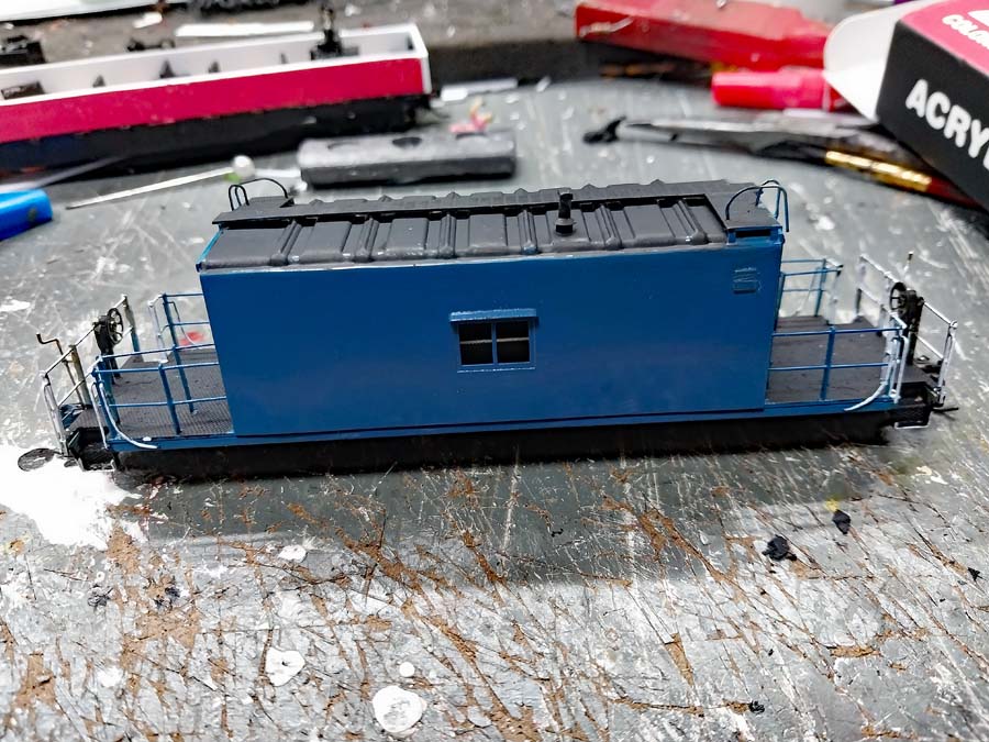 I am continuing to add the static grass and I am pleased with the improvement it makes. I also found a transfer caboose for a reasonable price so I am going to paint it as Conrail 18343 which lived out its time at the Kiski. I think it was sold to a guy making a caboose motel but I am not sure. I am checking on that. Charlie