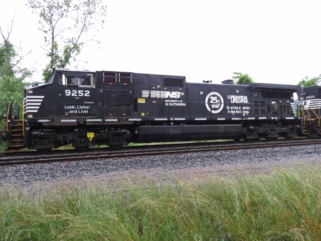 Here's NS 6920 the Veteran's unit photographed on the Warrick Shuttle coal train in Yankeetown, IN Sep 22, 2013. Darn weeds! Part of a rail fan's equipment should include a weed eater and chain saw!