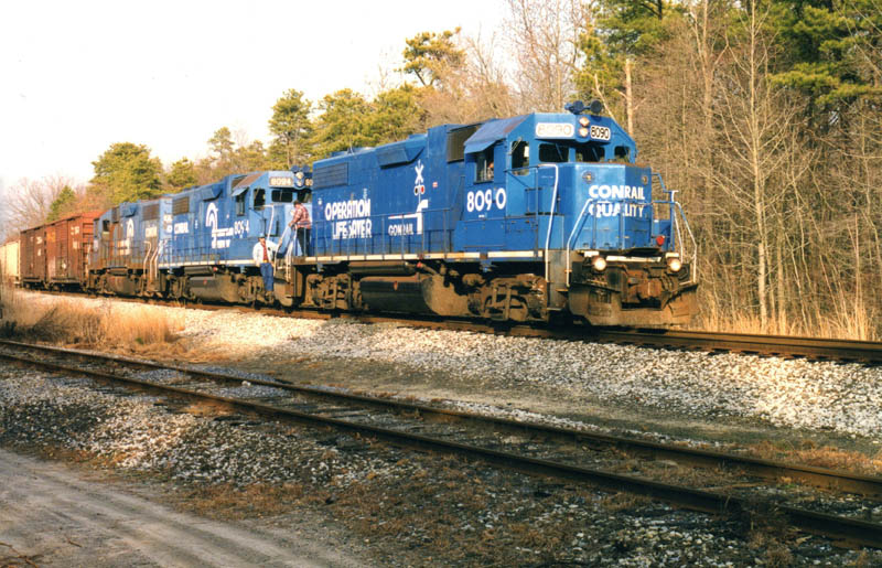 Conrail CA-51 at the interchange with the Southern RR of NJ at Winslow, NJ. March 1997.