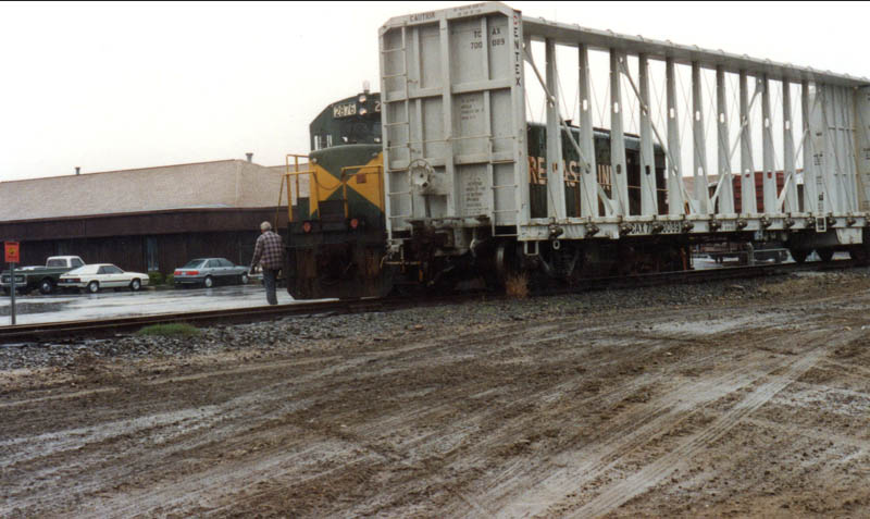 Shore Fast Lines U30-B at Peter Lumber, Pleasantville, NJ April, 1991.
