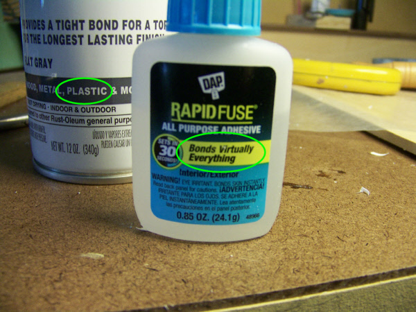 Went to Home Depot, what I have is indeed, PLAS-TEX®. I then went to the paint dept and asked them what was the best primer for plastic and she pointed out the "2X", even though it was cheaper ($3.98) than the others. I then spent an abnormal amount of time looking over their glue stock and decided on this one. This time it was the most expensive one ($5.47) for less than one ounce, but they say it sets in 30 seconds and cures in 30 minutes and bonds just about anything.
