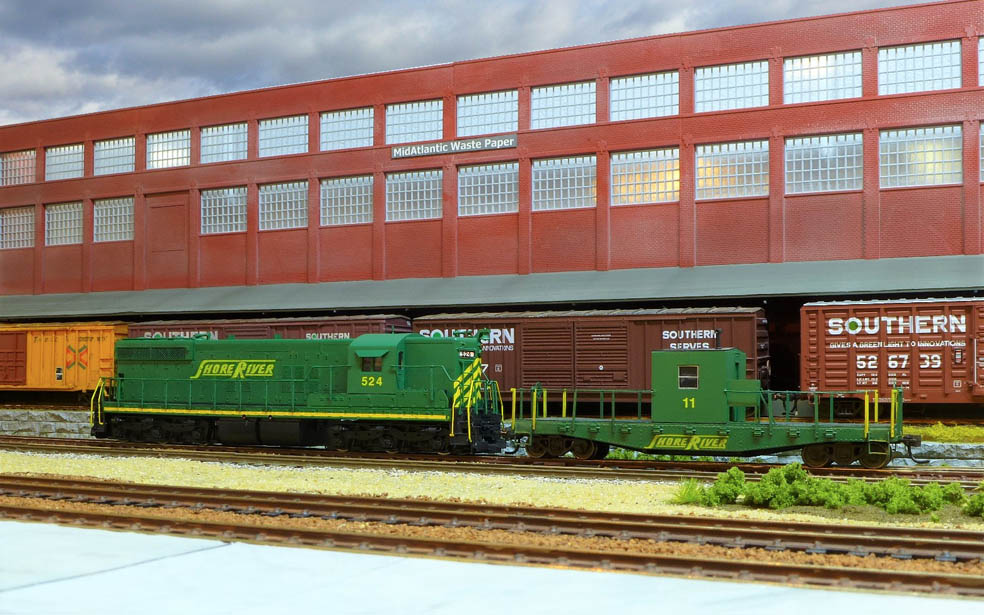 Shore River's SD9  on it's way back to the interchange track with Conrail.