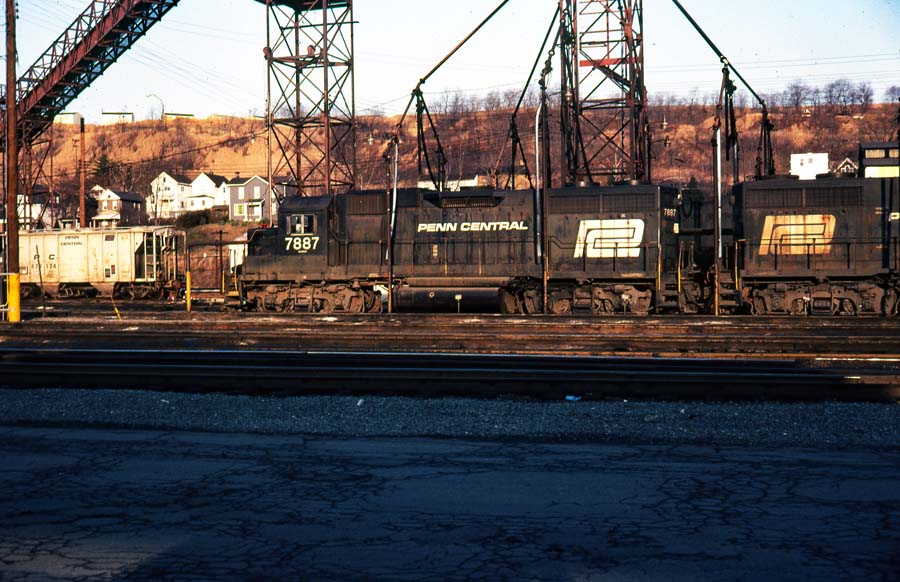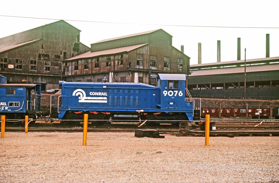 December, 1978.  This lonely Conrail SW7 is posed in front of Crucible Steel in Midland, Pa. The mills days of glory have come to an end and it was devastating to the whole area.  I tried to get a job there from the time I left school until 1974 when I finally met the right people and got hired.  I lasted 93 days and when I got the call back I told them politely no.  I never regretted that decision.