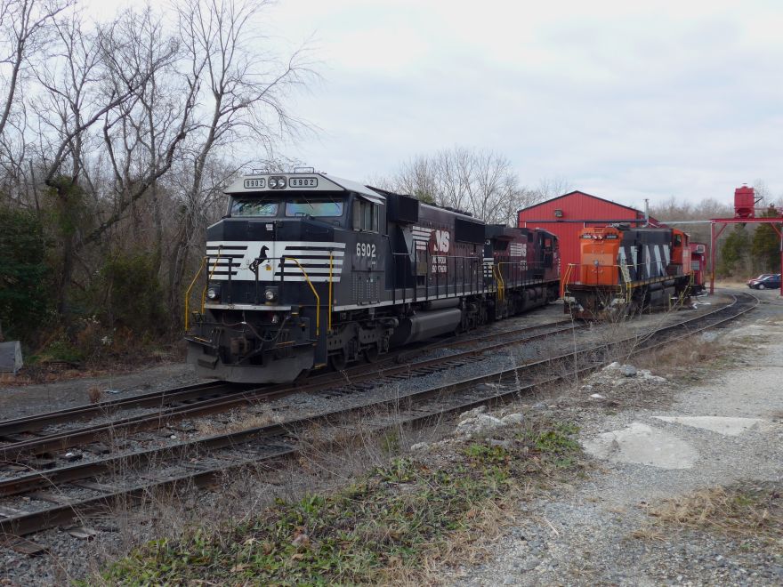 The power for NS 66/67K stone train, at the Southern RR of NJ engine house, Winslow,NJ, 12/12/14.