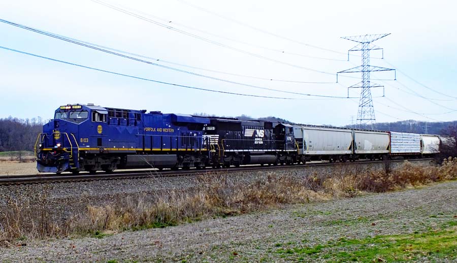 NS 8103 leads the 11V westbound at Creek Road, New Waterford, Ohio 12/13/2015.