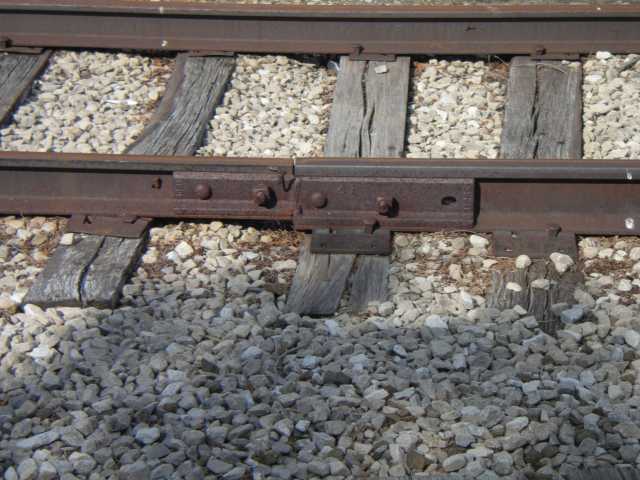 A series of rail joints along a siding as the rail decreases 2 sizes.