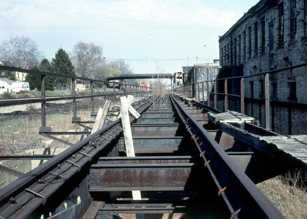I really didn't know a place to put this, so I'll put it in it's own place. This is the unloading track for clay and coal that served the W. S. George pottery in East Palestine. I took this about 30 years ago so if I ever built one of these I would have the general idea how it was built. I think that there are probably others that might benefit, so I'm glad to share.