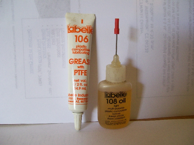 I always use Labelle's plastic compatible oil and grease, even on all metal parts. I don't oil the newer bits all that often, but those tender drives and the diesel pancake motors (the ones that are a single unit) start to screech when they're dry. They need a drop on the ends of the motor shaft.