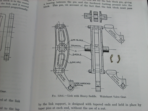 I am trying to get my scratch/bashed camelback finished for a north east prototype meet in October. I have bin working on it now off and on for about 5 years now Nope . The valve gear is my biggest sticking point. It has held up completion for almost 2 years. Constant binding and a few Walschaert explosions have caused me to put it down and walk away from it for months at a time, I believe this is try #4. I came across a book called Locomotive Valves and Valve Gears, by Yonder+Wharen. It is filled with info on this subject, perfect for what I need. I was working from old pictures, mostly at a 3/4 roster shot kind of angles, and my only measured drawings did not show the valve gear. I had to do a best guess at the sizes. After reading this book I found that my link was to large and radius rod were to long.I have cut down my radius rods and am now retooling the links. I also have to redo the valve gear hanger.