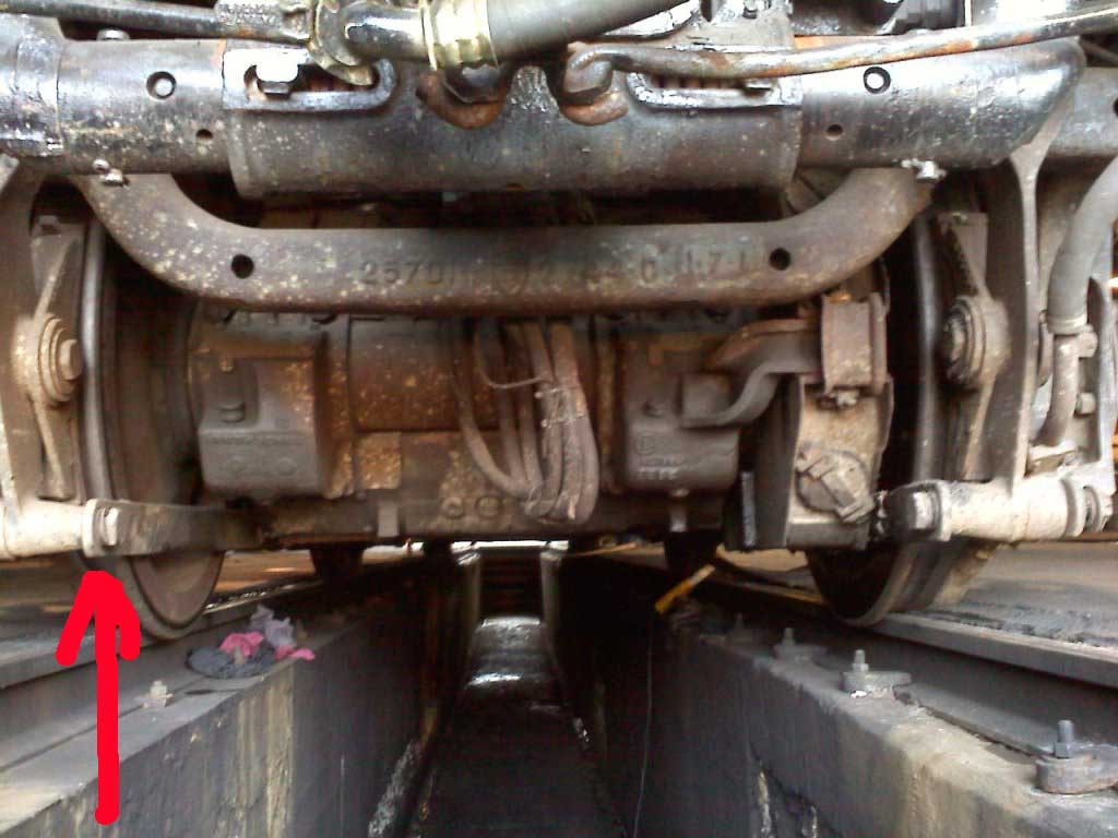 Epaw, Be sure you check the brake beams on either side of the wheels if you didn't look at them. They tend to rub on the wheel and when they finally rub through they can cause some serious damage and even a derailment. I noticed the rub mark on the wheel that I pointed out, though this can happen when going through a frog. An attachment can be welded to the truck frame to keep the beams centered and clear of the wheels.