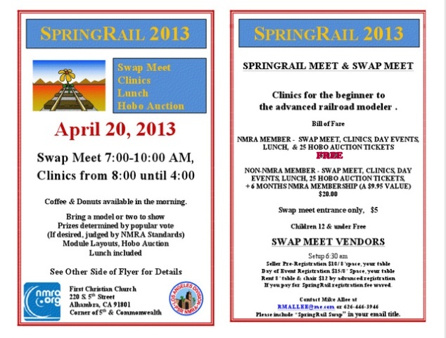 It is that time of the year again for the 4th Annual Los Angeles Division NMRA SpringRail Meet. Non-NMRA members are very welcome.