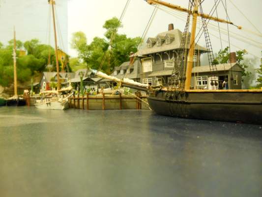 The quay will be done in wood. On the quay, a crane from a truck will help to unload the fishes from the boat (crane from mackmouldings)