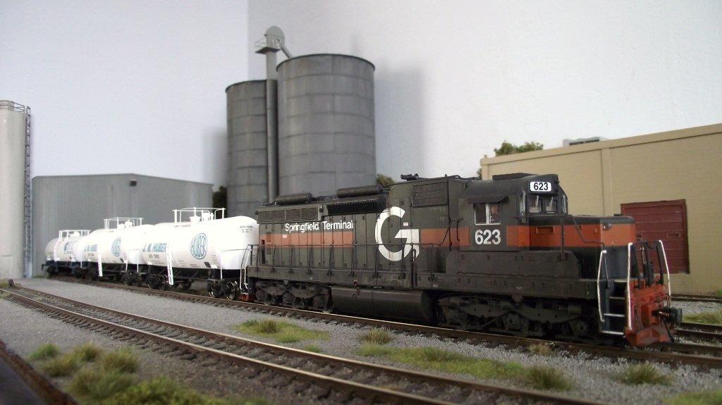 Here's a pic showing Guilford SD26 #623 switching clay slurry tank cars at the new spur.