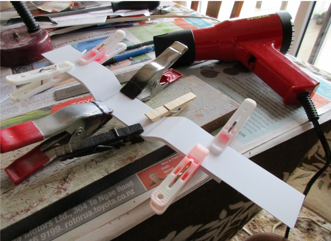 As you see in this photo, my grand aim of building this with common hand tools was shot down in flames as I bet Her-in-doors hair dryer is not part of a modellers’ everyday tool box!! :oops: