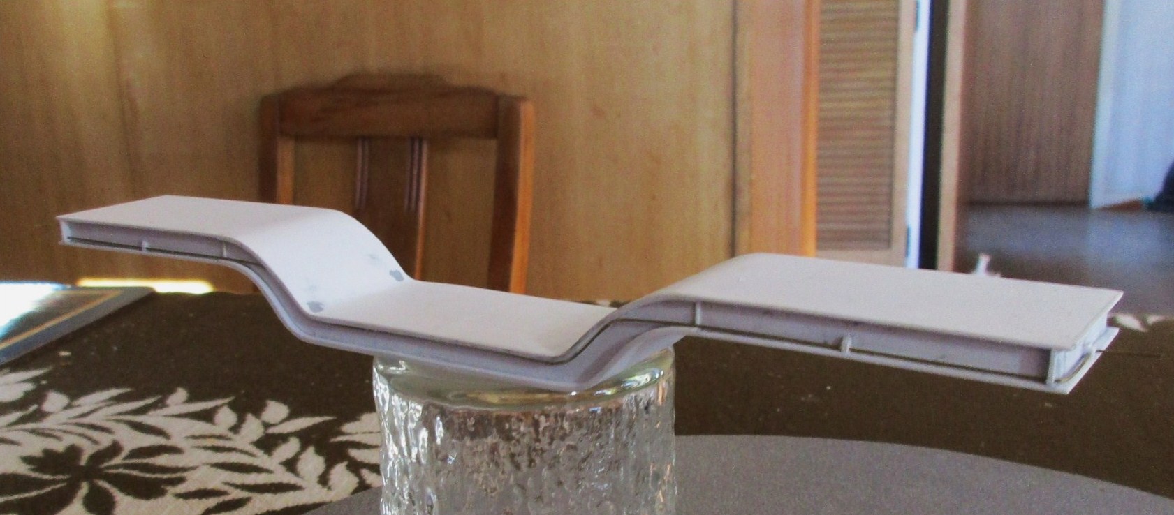 With the certain knowledge that I could end up with a molten pile of styrene and with more patience than I knew I had, and with the aid of a piece of dowel and judicious use of the hair dyer I ended up with the preformed deck, and, later, a bottom.