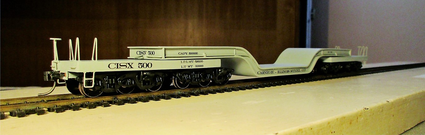 Flat car, Depressed, steel, Note A: Car No. 500: height from rail to top of depressed platform 2 ft. 8-3/4 inch, to top of car body 6 ft. 9-1/2 inches; length of depressed center 18 .”