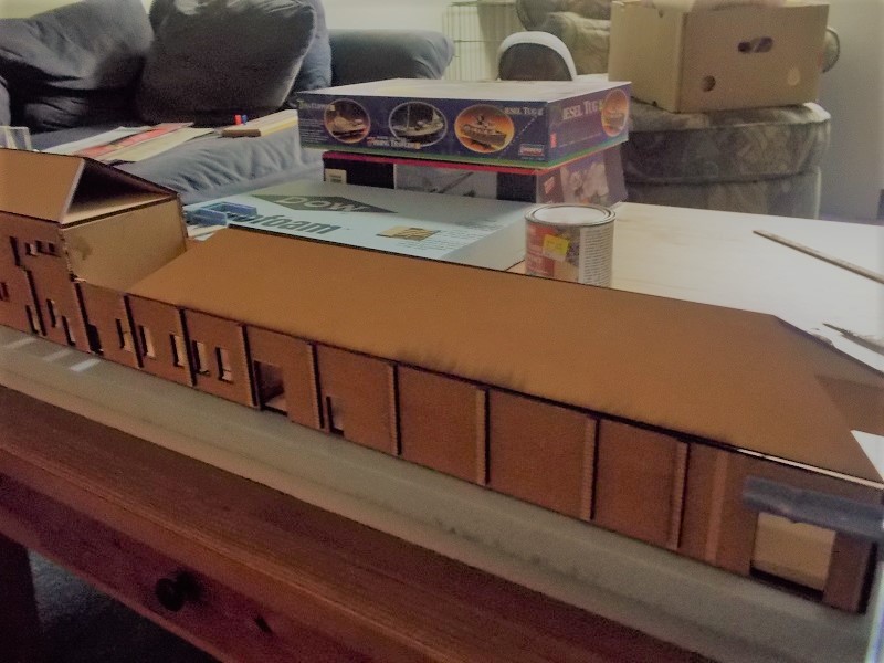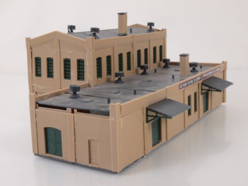 I researched this building and found that the model was to replicate a street car barn in Australia ! This structure is only one part of a large L-shaped building that I managed to see blue prints of . I can't get any photos ...was wondering how the front part of the peaked roof on the 2 story section was finished . I've wracked my feeble brain but can't come up with anything that I think looks good .....I may stick with the flat roof idea . The warehouse that this model will represent would probably have the simpler roof in real life .