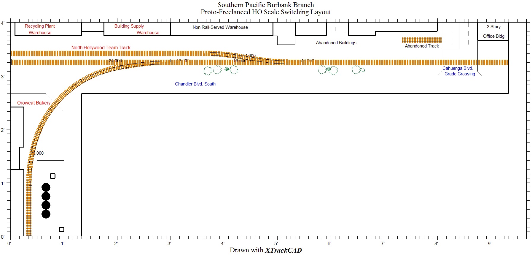 Here's the track plan thus far. I've kept it simple because I rent and in the past 2 years that I've been working on this, the layout has been moved 3 times. When I eventually extend it by adding more modules I've got 3 options, expand the bakery, the team track, and the opposite end. For now, I keep trains short and switch one industry at a time. Fits right in with my busy schedule!