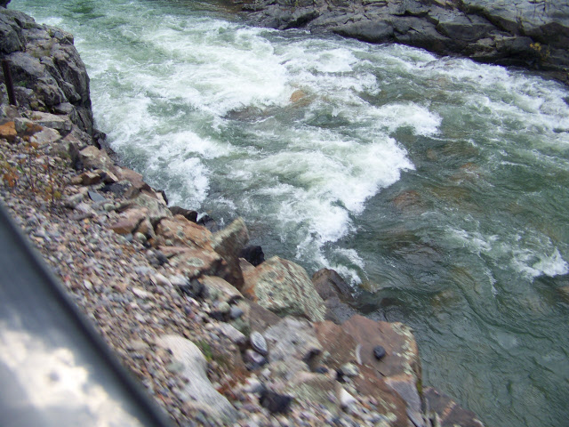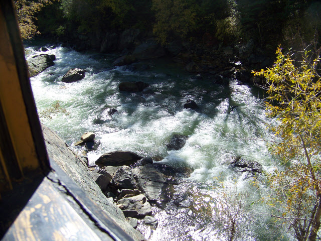 - The tracks run parallel to the river most of the way and switches sides about halfway. There are many good photo ops of the river and many rapids. I think they have Kayak races through the rapids in the spring when there's a lot of runoff.