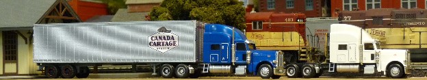 A modern-day scene at Leetown.Those Peterbilt cabs were a recent purchase from Princess Auto and too modern for my Leetown Division but I tried to create this scene when TH&B Geeps were still in existence.