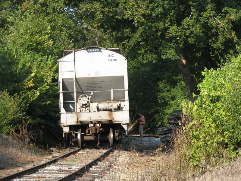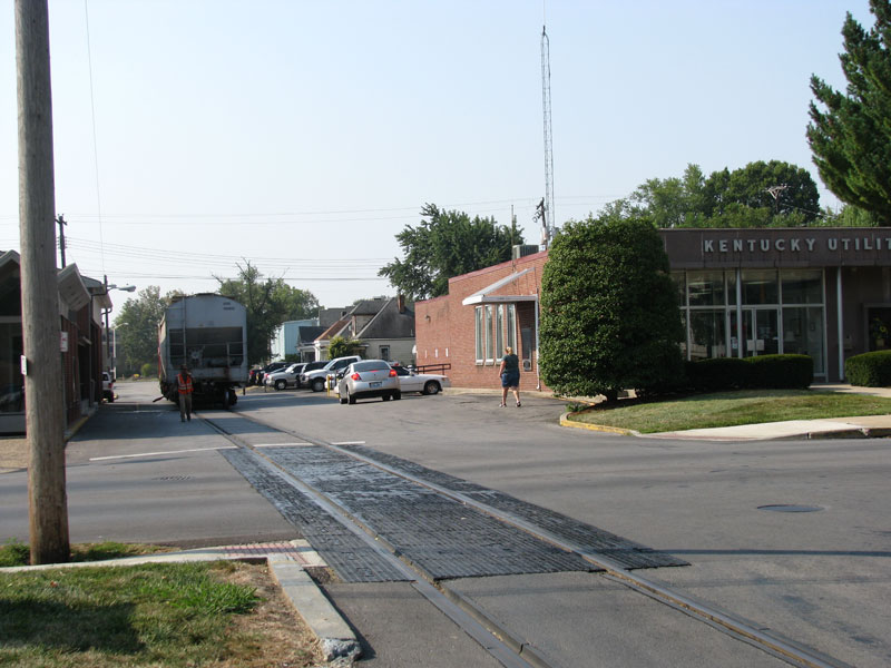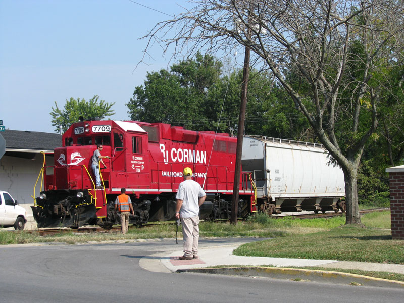 Re: CF&E Action/Short Line Action. - railohio - 08-25-2011 ![]() MAW16CrossingDefianceOH8-25-11 by railohio, on Flickr ![]() MAW16JewellOH8-25-11 by railohio, on Flickr Re: CF&E Action/Short Line Action. - Mike Kieran - 08-26-2011 I have an old Atlas RS-3 and the issue of Mainline Modeler that explains how to build the TTI GP12. I can't wait to start that project. Re: CF&E Action/Short Line Action. - FCIN - 09-02-2011 Got a call from my conductor friend on R J Corman Thursday Sep 1st, that they were headed to Shelbyville, KY, to work Macro Plastics on the Bloomfield Branch. Macro is about the last active customer on this 2.5 mile former L&N industrial spur in Shelbyville and since I hadn't managed to catch RJC working the branch, I threw myself together and drove the 25 miles to Shelbyville. By the time I caught up with them, they had just finished placing two cars of plastic pellets at Macro and pulling one empty. Here's a shot of the Macro Plastics facility and the spur where the plastic pellets are unloaded. 5 cars can be spotted and unloaded here. Nice grade huh? Re: CF&E Action/Short Line Action. - FCIN - 09-02-2011 Continuing with RJ Corman working the Bloomfield Branch in Shelbyville, KY... After getting clearance from the NS Louisville Dispatcher and timing off the lock on the crossing gate, lining the derail and opening the gate, we start shoving over the NS. Re: CF&E Action/Short Line Action. - FCIN - 09-02-2011 Continuing with RJ Corman working the Bloomfield Branch in Shelbyville, KY... After getting the train over the US 60 crossings and without hitting anyone in the process, Mark and Vince tie down the train for a few minutes to go grab a sandwich at a nearby store. Re: CF&E Action/Short Line Action. - Brakie - 09-03-2011 Ed,I'm always delighted to see R.J.Corman pictures.. I'm surprise at the condition the track is in..I have visited Corman's Western Ohio Lines and his Cleveland Lines and the track was in good condition. Re: CF&E Action/Short Line Action. - FCIN - 09-03-2011 Larry; That photo of the track and ROW really doesn't begin to show just how bad that branch is. But it was about the same back when it was L&N and later CSX. The only time any maintenance was/is ever done is when a car derails, then they'll just replace a few ties, hand tamp it and that was it. Per the conductor, the Macro Plastics plant is "supposed" to increase their business and Corman is "supposed" to do some much needed upgrades to the track. But we shall see. You know how the rumor mill is. At one time, there were several industries that received/shipped rail service on that branch, tobacco warehouses that shipped out from early November until the end of January every year. A facility that received aluminum ingots in box cars, a large lumber dealer and a fairly large farm service facility at the end of the spur, along with a few odds and ends customers. All the tobacco business is gone and their tracks have been removed, other facilities have closed down or changed ownership several times. The lumber dealer (currently Pro-Build but originally 84 Lumber) does not receive anything by rail and Crop Production Services infrequently receives covered hoppers of fertilizer. That leaves the Macro Plastics plant as the main customer and they currently get switched about 3 times a week. The branch which originally ran from Shelbyville to Bloomfield, KY, was cut back to its present length in the late 40's and was constructed to minimal standards. Since being cut back to simply an industrial branch, it's always been operated in push-pull fashion with the engine in the middle of the train if there were cars for industries with both trailing/facing spurs. I suppose if you back dated the branch to the 70's, it might make for an interesting model railroad line. Especially with the gated crossing of NS (SOU). If you're interested, you can follow the entire branch on Bing maps: http://www.bing.com/maps/?v=2&cp=qc2phc7wxx5p&lvl=18.926994479238182&dir=351.0787641823006&sty=o&form=LMLTCC. Starting at Bloomfield Junction on the map, follow the branch to the southeast and on to the end of the branch. You can still see the location of many of the tobacco warehouse spurs along with where others were/are located. These views show 6 pellet cars spotted at Macro Plastics and a couple of covered hoppers at Crop Production Services at the end of the spur. Re: CF&E Action/Short Line Action. - Brakie - 09-04-2011 Ed,Elmer Sulzer mention the Shelbyville to Bloomfield line in his book,Ghost Railroads Of Kentucky.. Looking over the map I could picture a L&N mixed freight behind a Alco RS3 making its way to Bloomfield. That does sound like a interesting branch line to model back in its heyday with the tobacco warehouses and the other industries that require boxcars. Maybe a Big Burley could be one of the warehouses..