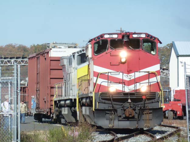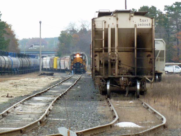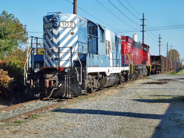 Re: CF&E Action/Short Line Action. - FCIN - 10-24-2011 A few photos from my rail fan trip this past weekend. First we have one of the former MRS MP15dc's now operated by FTRL at the Anheuser-Busch plant in St. Louis. Former MRS 257 still wearing her MRS colors, but you can see how FTRL painted the sides with a matching green in order to re-letter it. Next stop was Mexico, MO, to spend the night and where I was able to photograph the complete roster of the Ozark Valley Railroad (former ATSF GP9U's with their Topeka cabs) - 1306, 1321 (still in primer) and 1362 OVRR has a rather interesting situation in Mexico, as they must first enter the NS main line then cross over to the KCS line to access the small KCS yard. The NS and KCS lines run parallel to each other about 100 feet apart from Mexico to Centralia, MO. KCS only operates about 4 trains a day on this line which gives them access to the St. Louis area by running from Kansas City through Louisiana, MO, to Roodhouse, IL, and then southward to East St. Louis. Any one that's ever seen the Kalmbach book Classic Railroads You Can Model will remember the article "GM&O Doodle Bug Line" that talks about this railroad line in its GM&O days. That book also contains the article "Wabash (N&W) Mixed Train Branch Line" that covers what is now the Columbia Terminal Railroad. Re: CF&E Action/Short Line Action. - FCIN - 10-24-2011 Next day, headed over to Columbia, MO to the Columbia Terminal Railroad to catch the Columbia Star Dinner train operation. Took another photo of COLT 2001, a former ATSF GP9U at their transload terminal (a nice little potential model railroad facility itself) Couple of local rail fans said that the train has been doing a good business since they started operating it a couple of months ago, but we'll have to see how successful it ends up being when the "new" wears off. With a ticket price of $69.95 a person, that's a rather expensive meal for a roughly 40 mile round trip on a train moving 20mph. Not quite the same as eating in a dining car on a train running 70mph! The Columbia Terminal Railroad itself is doing great; delivering about 40 cars of coal a week to the municipal power plant and with quite a few customers on the line in Columbia. Great to see this former Wabash branch line continuing to thrive. Re: CF&E Action/Short Line Action. - bdw9535 - 10-24-2011 Ed, Great looking shots Bruce Re: CF&E Action/Short Line Action. - Brakie - 10-25-2011 Ed wrote: The Columbia Terminal Railroad itself is doing great; delivering about 40 cars of coal a week to the municipal power plant and with quite a few customers on the line in Columbia. Great to see this former Wabash branch line continuing to thrive. ------------------------------------- Excellent news! After reading about that branch in MR back in the 60s I fell in love with it..Now I like it even better under COLT with the Wabash inspired paint scheme on the 2001 and after following the track on Bing Maps I would love to visit it.. Re: CF&E Action/Short Line Action. - bdw9535 - 11-02-2011 A pair of Southern RR of NJ locos with half of the 50 car stone train at Pleasantville, NJ Two other SRNJ locos after shoving the other half of the stone train into AE Stone for unloading does some switching at Trico Lumber Bruce Re: CF&E Action/Short Line Action. - bdw9535 - 11-04-2011 Winchester and Western at Millville, NJ 11/4/11 Bruce Re: CF&E Action/Short Line Action. - Ralph - 11-04-2011 LOVE those Wabash F units!!!!!! Re: CF&E Action/Short Line Action. - bdw9535 - 11-09-2011 SMS Rail Service at Bridgeport, NJ Bruce Re: CF&E Action/Short Line Action. - Steamtrains - 11-09-2011 Ralph Wrote:LOVE those Wabash F units!!!!!! I'm with you there....That's where diesel "evolution" should have stopped...