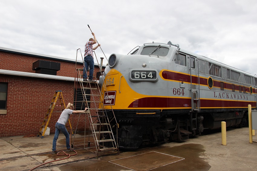 Re: 1 : 1 scale modeling - Charlie B - 05-21-2017 Thanks for posting that picture Steve. I like the looks of that unit for sure. Charlie Re: 1 : 1 scale modeling - doctorwayne - 05-21-2017 I agree. Great pictures, Steve, and a nice write-up, too. ![]() ![]() Wayne Re: 1 : 1 scale modeling - e-paw - 06-03-2017 Hello gents, More pics to post from today. The big thing from today was to finish up all the battery connections and put the batteries on charge. As with all things railroad, even the battery charger is oversized. I don't know if I have posted this before,, But this is a shot of our parts car. She is an X-Lehigh valley 50 footer. It provides all our on site storage, and is completely road worthy. We will eventually repaint her back to her original LV colors . I did do a bunch of house keeping around the "B" inside and out today, it needed it badly. I didn't take any pictures of this as it is not very exciting or interesting, just lots of vacuuming, sweeping up, and tossing out garbage. So I'll post a couple of pics of todays trains running around the museum. Here is 664 pulling the Scranton limited. And 26 on the caboose hop. I would like to have everyone look here. >>>>> <!-- l --><a class="postlink-local" href="http://www.bigbluetrains.com/forum/viewtopic.php?f=4&t=9363">viewtopic.php?f=4&t=9363</a><!-- l --> <<<<<< And invite all of you to join in. Thanks for reading along with me for all these years. Re: 1 : 1 scale modeling - ngauger - 06-03-2017 Man that's GREAT!!!!! We have got to get to Steamtown sometime this year ![]() Re: 1 : 1 scale modeling - e-paw - 06-12-2017 I spent last Sunday reinstalling the battery charging receptacle on the "B'. The plugs innards are shown here, the old wire was dry rotted and mostly bare of insulation. It's silver soldered to the back of the charging receptacle, and all attempts to unsolder it failed miserably. So on to plan B... I went to Power rail to pick up a few butt splices , the counter person informed me that they do not carry them in the correct size for the #4 wire used in the charging circuit. They suggested using some ring terminals and nut and bolting them together. It's how they do it during the rebuilds they do in shop. So here is now plan C. The splice gets staggered and insulated with rubber and plastic tape. The section of conduit that holds the Charging wire had a bad fitting attached to it called an L-B. It was replaced with a new one, and remounted between the front truck and the electrical cabinet. It's one more step towards getting her going. While I was there we got a delivery of the brushes that we need for the main generator, so maybe I will be putting them in next week. Re: 1 : 1 scale modeling - e-paw - 06-18-2017 Battery cells were toped off today with some fresh distilled water and placed back on charge, now using the charging receptacle shown in this pic. A brand new set of brushes were installed in the generator. The ones on the sides are as easy as can be. The ones on the very top and bottom of the generator are nearly imposable to get at. They require that you have an extra joint in your arm between your elbow and shoulder. The brushes are held in place by a set of spring clips and have a set of wire leads that attach to the housing. Some still need to be attached in this shot. At the very bottom of the generator, on the fireman's side is a terminal for the starting circuit. When the start button is pressed the starting contactor sends positive power from the batteries back to the generator on this wire to make it turn like a motor, thus rotating the prime mover to get it started. This connection was also completed today with a little machining of a brass plate to bolt the lug to the terminal. At the starting contactor the same thing was done. We are now just a few weeks away from our first start up of the "B". She will not be able to move under her own power yet but getting the prime mover to start and run will be a HUGE hurtle that we have over come. Re: 1 : 1 scale modeling - Charlie B - 06-18-2017 Nice work, Steve. It may be late to tell you this and you may all ready know it, but sometimes you will get a spring that is too strong and it will wear a brush prematurely. I had one on the Alco. Once I replaced the spring I never had to replace that brush, or any other for that matter. You folks do wonderful work, keep it up. Charlie Re: 1 : 1 scale modeling - e-paw - 07-02-2017 Thanks gents, I do like Alco's idea on how they mount the generator a bit better then the EMD way. Alco mounts the generator directly to the prime mover so there is no " lining up " like on an EMD that bolts to the floor. The EMD generator also has an AC winding that the Alco doesn't have, so the Alco genn is much smaller. There are lots of cool differences between the builders. When you start getting into them you can see the different ways they solved the same problem. I haven't had the chance to get my hands into a Baldwin or FM,,,, that would be fun. Today we moved some stuff from our Lehigh Gap building up to Scranton. It's nice that our Boxcar has a custom crane built into it for loading and unloading. If this keeps up we will need a bigger box car. We started to button up the compressor by hanging the after cooler and putting the mesh screen back on the generator blower. The other plumbing parts for the compressor should be delivered soon. I also drilled out the holes and mounted the pressure switch and gauge for the main reservoir. Some cooper piping and power will be added later. I removed the warning bell from it's clapper,( that thing next to the shinny box that's the pressure switch.) and repainted it . It will get reinstalled next weekend after it's dry. We also uncovered a wiring issue in the main cabinet. We tried to bump the fuel pump to see if we had any leaks in the lines, we were trying to save a little work and reuse some of the control wiring that pulls in the fuel pump contactor,,,,it went badly. The NS wire caused 