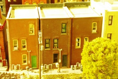 Re: Freelance 2012 - jwb - 03-30-2012 There are always exceptions, but fences are generally built and maintained by property owners. Here are some fence-area and backyard-area photos from industries. There are several things that I think are interesting here. One is that the open areas are mostly just plain dirt, sometimes with sagebrush or grass tufts. Another is that old pallets are a very common item in backyard areas. A third is that old house trailers and motor homes are also pretty common, as offices, security offices, or even living quarters for the security guard. And don't forget the cars for the workers. Re: Freelance 2012 - faraway - 03-30-2012 jwb Wrote:There are always exceptions, but fences....Thank you for the photos and the explanation. In my special case the backyards do not belong to industries but to small buildings each housing a shop (commercial area). None of the small backyards has any road access for trailers etc. I do ask for fences between the small backyards because I assume it is question of social behavior of small shop neighbors. Do (did 1960 - 1980?) they fence or trust? Re: Freelance 2012 - radivil - 03-30-2012 a. between the backyards of the shops? Did each owner have and maintain his fence "against" his neighbor? In all the areas I'm familiar with, there'd be no fencing because the alley behind the shops is where employees park, trash is disposed of, deliveries are made, etc. Sometimes even entrances to businesses. Bars and eateries do this often. 2. What would be at the backyards? I assume old stuff, boxes etc. However nothing cute or nice like flowers etc. And there's often flowers back there, in window planters. More often than not, the upper floors are housing. I know of a place with some rather elaborate vining plants in an alley like that. Re: Freelance 2012 - jwb - 03-31-2012 Oh, wait, I see what you're getting at, now that I look at the store backs you have set up there. In part, I was assuming you were continuing with a theme of sun-belt industrial areas, which is what the photos I posted above would cover. The most recent post is referring to Virginia, which is a different matter. Small downtown brick storefronts like Rix, DPM, etc, are in fact different. In many ways, you're talking about a different socioeconomic situation. From 1960-80, railroads were pulling out of urban and suburban areas that would have the environments most like these (notice, for instance, that the two photos I have here just happen to be taken near tourist lines). There are several other things to think about: the tenants who run the shops are mostly renters, not owners, so their standards of upkeep might not be as high. And the closer to 1980 you get from 1960, the more of these storefronts or backs are going to be abandoned. I would say that the areas behind stores, especially where you have these modeled, are going to be alleyways, which are usually asphalt paved. There will be dumpers and collections of crates and possibly other junk, also pallets, but random. You correctly have utility transformers -- you can do with several more utility poles here. From 1960-80, the storefronts with apartments above will have TV antennas (but not anymore, since now there's cable). Here are two shots of DPM building sides and rear on my layout: Re: Freelance 2012 - faraway - 03-31-2012 jwb Wrote:Oh, wait, I see what you're getting at, now that I look at the store backs you have set up there. ...Yes, that is it what I am looking for. I am somewhat surprised you exclude SOCAL and Texas. I think this older lines of simple stores in brick buildings are found everywhere in the US and they are not typical for any area. An example might be Raton NM. The block between 1st St, 2nd. St, Cook Ave and Park Ave has rear walls made of brick similar to RIX or DPM. Also many old rear walls of small brick buildings in the LA warehouse district have a lot in common with RIX and DPM rear walls. Your remarks about the change from 1960 to 1980 are so important for all the details. I will try to find a compromise of well maintained and run down buildings to be flexible in time definitions. Thank you for helping! Re: Freelance 2012 - jwb - 03-31-2012 Keep in mind that Raton, NM now has only one pair of Amtrak trains per day, plus occasional baretable transfers to the ex-York Canyon branch -- and this has been going on since before 1980. Same applies to the LA Warehouse District, almost all track is gone now and was in the process of removal between 1960 and 80! In other words, yes, the backs of brick storefronts are interesting, yes, they still exist, but close to rail operations -- less and less. Re: Freelance 2012 - faraway - 03-31-2012 jwb Wrote:... yes, they still exist, but close to rail operations -- less and less.That is one of the reasons I went back on the time line "somewhere" between 1960 and 1980. I try to explain the railroad existence with the "Mutual Grain Service" and the "General Mill" industries. There is nothing like a "main line" or even "branch line" on my layout. Just the tracks necessary to support that two survived customers. The origin of the in and outbound cuts is not on the layout (staging yard at the other side of the room). The other reason are the engines used today for trivial industry switching. Mostly run at least in pairs and sometimes as long as Gensets. That is to much for my small layout. My tracks appear much longer if I stay with SW1500, GP9 etc. (but I still love my Genset!.... in the cabinet only )I see gas meters at some of your buildings. Is there a rule of the thumb where gas is used and where not? I would guess gas is a preferred used for heating and therefor not common used in the south (TX- CA) because only little heating is required and can be done with electric ovens? Re: Freelance 2012 - faraway - 03-31-2012 The tenth building has been added to the Mutual Grain Service replacing a more modern shoe boxes and closing the gap to the string of commercial ba