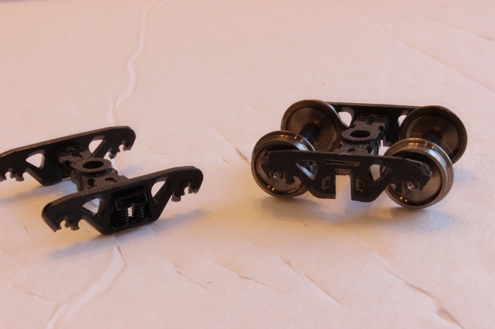 Re: E-paw's duff challenge for 2013 - Schraddel - 02-19-2013 Great engines you have created! Lutz E-paw's duff challenge for 2013 - e-paw - 02-28-2013 Almost had the chance to paint them today, , but it started to snow just as I got home from work. So I'll post what I've been up too.I had this idea floating around in my head now for a few months and decided to use it on this model. I wanted to give a try at building one of these...<!-- m --><a class="postlink" href="http://www.gingerb.com/LNE%20Bethlehem%20Tender%20Booster%20Truck.jpg">http://www.gingerb.com/LNE%20Bethlehem% ... 0Truck.jpg</a><!-- m --> A Bethlehem tender booster truck. My big hang up was to come up with a way to make the side rods turn with the wheels. My solution was to start with one of the Kato freight trucks that have the spinning bearing caps, and modify it for side rods. I started by putting a file to the side frames to get as thin as I could, that way I can add styrene over them to build the new side frames. I next cut some thin styrene in the shape of the new side frames and attach them to the trucks with Model Masters ca glue. For the counter weights, I cut them from the same plastic as the side frames carefully marking the center point. I filed off the details from the bearing caps and drilled out the center hole from the back side out so that it would be a close to dead center as I could make it. I cut the side rods from some U-channel sanded the ends flat and drilled them out to accept some Bowser valve gear rivets |