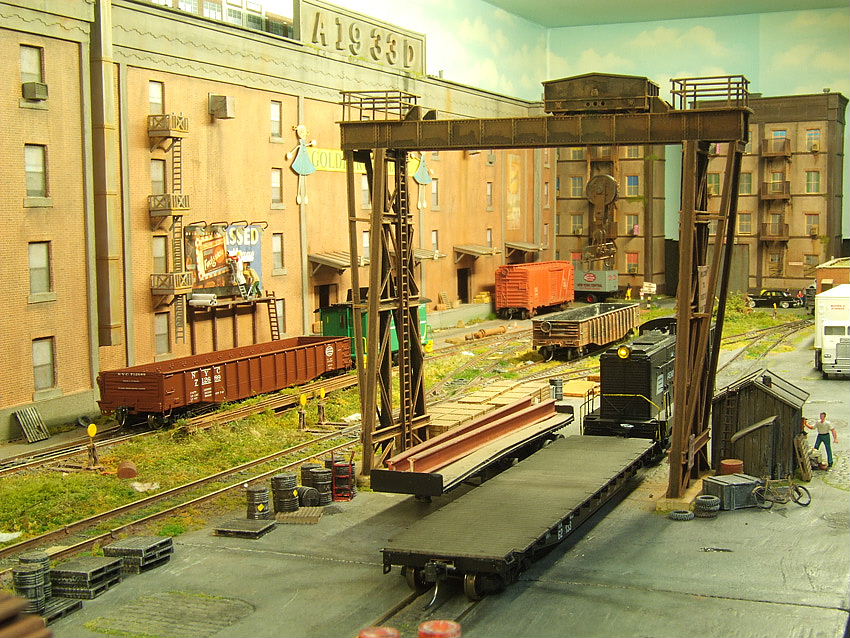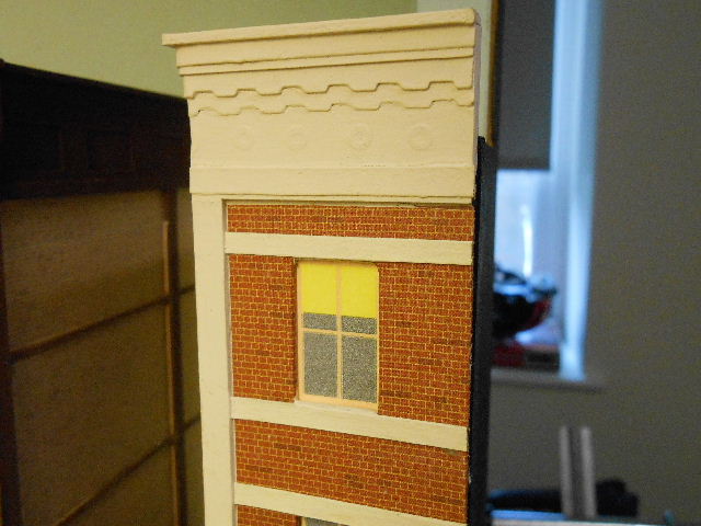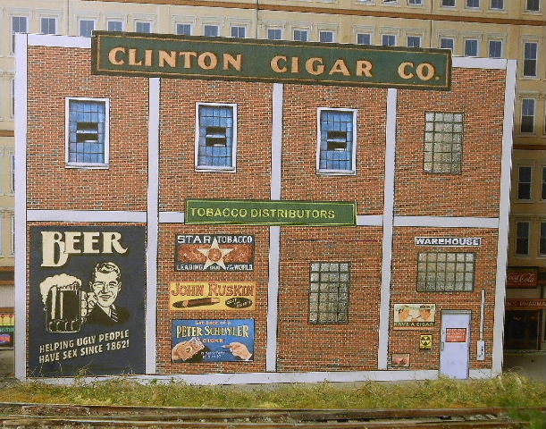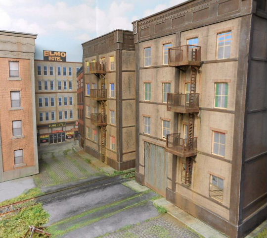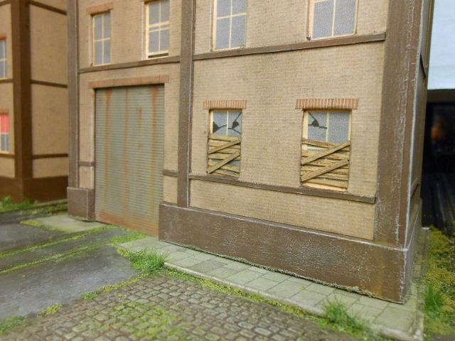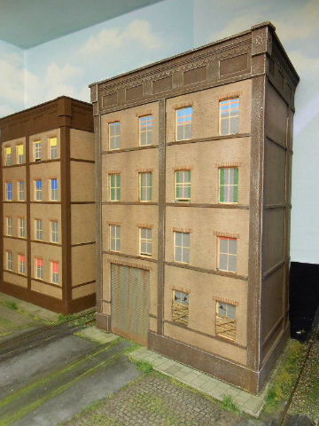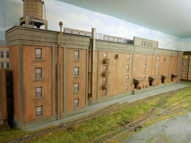 Re: 59th and Rust - sailormatlac - 02-07-2013 Brilliant! I once used these kind of scissors to make diamond shaped roof tin shingles, but would never have thought to use them for cornice work! I love that big 1898! Matt Re: 59th and Rust - Ralph - 02-07-2013 VERY effective! Yep! Craft stores have lots of resources for us! ![]() Re: 59th and Rust - long island jack - 02-07-2013 The brick work is nothing fancy,just different colour brick paper,first thing i did was seal the areas where the paper was to be attached with wallpaper adhesive (the ready mixed stuff that comes in a tub),while the was drying i cut out my brick paper,then pasted it with the same adhesive,allowed it to soak for a couple of minutes (this stops the paper from bubbling) then slid it in place,flating it down with a small sponge,making sure the edges are well stuck. Next job was to make the lintels and cills for the windows and doors,these are made from 1mm card ,cut into strips,painted the matching colour for each building,when dry they where cut to size and glued on with PVA. I also used a building which was a free download (can't remember which website)this was modified to fit its chosen location. After this it was time for some clearence testing (playing trains really) Next thing to think about is windows and doors. If anyone has any question,please ask away,i'll try my best to answer them. Ray Re: 59th and Rust - Sumpter250 - 02-07-2013 Ralph Wrote:VERY effective! Yep! Craft stores have lots of resources for us! Couldn't agree more heartily !!! ![]() ![]() ![]() And, used very effectively, Ray ![]() ![]() ![]() ![]() Re: 59th and Rust - faraway - 02-07-2013 long island jack Wrote:The brick work is ...RayRay, thank you for the explanation. It is very interesting to see such a good alternative to styrene. I think the Belgium layout "Ponca Yard" uses a similar approach for the buildings ( <!-- m --><a class="postlink" href="http://www.freewebs.com/newponcayard/index.htm">http://www.freewebs.com/newponcayard/index.htm</a><!-- m --> ). I love like it when the railroad is small and tiny compared to the huge industrial buildings. That is one unique feature of "real industrial buildings". That is true for the height of older structures as well as the length of the modern flat buildings. Re: 59th and Rust - Ralph - 02-07-2013 The dark gray trim on the brick of the 1898 building really makes that structure! Re: 59th and Rust - long island jack - 02-08-2013 Thanks for all the kind comments,this is the first time i've used card/paper for my building, wasn't to sure how they would turn out,i usually work in plastic. The windows are a bit of a compromise,tried printing on clear plastic,but the only colour that worked well was cream,then thought about building them out of plastic strip this would have taken for ever,so i decided to print them on to paper. The beauty of this is i can have different window design for each building,and print them by the sheet,i've add blinds to some of the windows,some have even cracked glass,though i'm not a 100% happy with them, i think they don't look to bad when they are all together on the layout. All the doors are made from card,i found 2 different types of textured card at my local craft shop, one looked like boards the other looked like roller doors,so it was just a matter of making each door painting and glueing in place. The next job is to add all the small detail, pipes, signs etc. Ray Re: 59th and Rust - long island jack - 02-09-2013 The detailing parts are a mixture of card,plastic and resin,the pipe work is made from platic tube or left over spruce's from kits, A/C uints and vents are mostly from a uk firm, you can find them here <!-- m --><a class="postlink" href="http://www.unitmodels.com">http://www.unitmodels.com</a><!-- m --> ,door canopies are made from card.The building signs are from bit from that craft shop (again),the owner is a great help, when she starts to restock the shop,she's started looking out for things that could be used on model railways (now she knows what i mean when i say "in scale"). Yo've really got to have a open mind when looking round these type of shops. Next and last thing to do is the weathering,this is something you like or don't like,personally i think it makes a building,i've seen some good layouts,but whats let them down is the shine you get of plastic buildings,even a dark wash would do wonders, (thats my rant over).The first thing was to seal the buildings, for this i used hairspray (cheap,non-purfumed) just a light coat,then i used some acrylic paints (craft shop again) and drybrushed where i wanted stains,rust marks etc. When all this was dry,out came the womens makeup,from my local pound shop,(you guest it a £1) four boxes with different colours,this was then used to tone down the acrylic paints and make them all blend in,i also used some pastel chalks for colours not in the makeup boxes and charcoal,(from you know where). Last thing to do was fix them to the layout using small self tapper screws,once in postion grass,soil and other rubbish will be glue a long the bottoms,some buildings are set in, some are on top (one of my pet hates gaps under buildings). Here's a shot looking down Rust st to 59th.(grass still to add) Hope you enjoyed this "how to" and it's been of some help,if one person uses one part of this it all been worth it,we can all learn of each other. Ray Re: 59th and Rust - jwb - 02-09-2013 Would it be possible for you to go into a little more detail on the specifics of how you do windows? Re: 59th and Rust - sailormatlac - 02-09-2013 Again, great modelling Ray with cheap materials. Those building capture the very essence of those large warehouses we can see on old NYC pictures. Another proof one can easily scratchbuilt personnalized buildings using simple but effective method. ![]() I think it will inspire a lot of folks here. It's funny, but most impressive structures I've seen here were all made of card. Your bullet proof struc