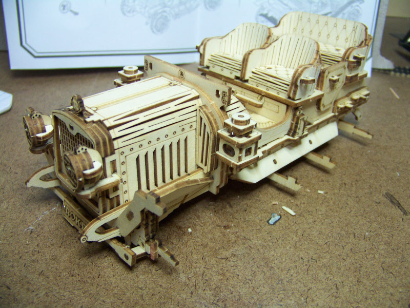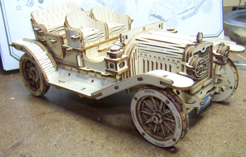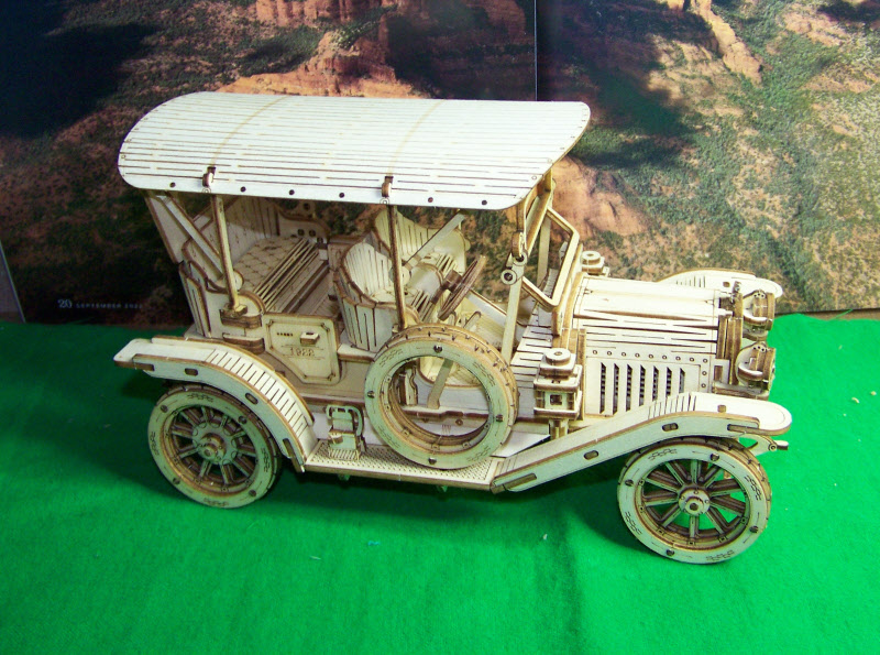 RE: Antique automobile - tompm - 02-04-2024 Impressive work RE: Antique automobile - FiatFan - 02-05-2024 Not sure I would have the patience for that. Excellent work. Tom RE: Antique automobile - Charlie B - 02-05-2024 Don, the openings in the cowling would have been air vents. Remember when we had them operated with cables. Looking better everyday. Charlie RE: Antique automobile - ezdays - 02-05-2024 Thank you all, it does take patience and a steady hand, but remember, I work in N scale where patience and a steady hand are required. I am actually hooked on these models and they're really not that expensive, this one was $27.99 with free shipping. RE: Antique automobile - ezdays - 02-05-2024 (02-05-2024, 08:53 AM)Charlie B Wrote: Don, the openings in the cowling would have been air vents. Remember when we had them operated with cables. Yeah, but what's behind those vents look like radiators on both sides. Look though the vents, I'd open the cowling, but I might bust it and they did not provide a spare. RE: Antique automobile - ezdays - 02-05-2024 (02-05-2024, 09:03 AM)ezdays Wrote:(02-05-2024, 08:53 AM)Charlie B Wrote: Don, the openings in the cowling would have been air vents. Remember when we had them operated with cables. Took a shot of the instructions showing what's behind the vents. Could very well be radiators, don't know for sure since I've never been under the hood of a vintage car like this. Could also just be something the put in the kit since there's no engine. RE: Antique automobile - ezdays - 02-05-2024 Big jump, I'm done with steps 7 and 8, almost halfway there since there are 17 major steps in all. Part wise, I've used 161 parts out of the 298 total. Step #7 added the transmission and other undercarriage parts, #8 dealt with the headlamps and some trim pieces. The most difficult thing so far was to get the Arizona prison system to make license plates small enough to fit the bumper. I got two so I'm hoping there's one for the back as well. RE: Antique automobile - LiveSteamer - 02-05-2024 Looking real good Don. It is coming along very nicely. RE: Antique automobile - TMo - 02-05-2024 Might be an excellent project for anyone interested in taking on N-scale. If you can complete any one of these kits, feel free to drop money in the world of the tiny! A man has to know his limitations, and I can say with very high confidence (based on my hand size and constantly eroding optical prowess) that the tiny world is not in my future. For those that do, however, I doff the cap and bow in complete and utter admiration. RE: Antique automobile - ezdays - 02-06-2024 Thanks much guys, I appreciate the comments. Moving right along, I've done all of steps 9 and 10. Step #9 was all about adding the fenders, just 5 sub-steps and 10 parts. Step #10 was just building the wheels and attaching them. There were only 3 sub-steps in #10, but a whopping 60 parts total. The tires do rotate but there is no source of power but to push. One thing I'm finding is that there are so many parts on the assembly that I have to be very careful not to knock any loose. I did finally resort to gluing some of the parts like the front seats and one fender that would come apart. Most other parts fit tight, but I've got enough glue to deal with those that don't. ![]() RE: Antique automobile - ezdays - 02-07-2024 It's finished. Got every detail the diagrams asked for. Steps 11 though 17 were just adding details and accessories like steering wheel, spare tire, roof and a few other things. The more I worked with it the more I'd knock some parts loose, and a few broke. It's just too fragile at that point. I did have to use glue to repair the broken parts and to secure others. The only mod I made was to add a license plate to the rear. It is required since I plan on driving it around the neighborhood a bit. In Arizona, the only issue rear plates unless you are paying to have a vanity plate, which I obviously do, then they give you one for the front as well. This looks like a model of the 1910 era of the Rolls-Royce Silver Ghost, up to and including the spare and tool box. With those in place I would find it difficult to get into the vehicle, especially on the driver's side. The two back doors do open, but barely wide enough for someone to squeeze through, but all the details are there. I enjoyed doing this, as I said, it is focus intensive which is one reason why I like it. My next project is a 1980 sleeper truck cab. I think that one is 1:40 scale which may make it a bit more difficult since there's just about as many parts to it as there is to this one. RE: Antique automobile - Charlie B - 02-08-2024 Very nice Don. ![]() ![]() ![]() Charlie RE: Antique automobile - ezdays - 02-08-2024 Thank you Charlie, fun, fun, fun.... Here's a few more shots with the rear doors open. Notice that although the seats are cushy-comfortable, they are hard to get to with all that stuff on the running board. I looked at pictures of the prototype and yup, the running boards are cluttered, just like the model. Here's the prototype (linked image: And my very close models. If I painted it yellow, you'd probably not know the difference.. ![]() ![]() ![]() RE: Antique automobile - tompm - 02-08-2024 Great job, Don! RE: Antique automobile - ezdays - 02-10-2024 (02-08-2024, 04:20 PM)tompm Wrote: Great job, Don! Thank you Tom, it's fun, relaxing and I just like building things. One day I'll get back to my layout, but for now, I'm starting another one and just picked up the mother of all wooden puzzles. I'll talk about those later. |