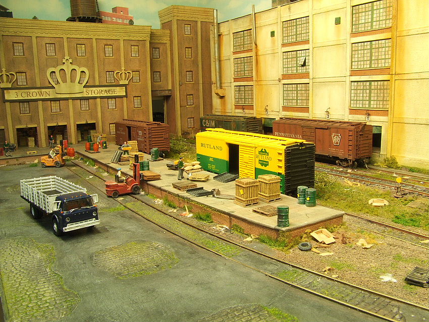 Re: 59th and Rust - Harry - 02-10-2013 faraway Wrote:Ray, you created a wonderful atmosphere on your layout ![]() :jawdrop: great work Ray ![]() Re: 59th and Rust - long island jack - 02-10-2013 The cobbled areas are made of a mixture of plastic and fillers,first thing i did was cut some Wills cobble plastic sheet in to random shapes they where then glue down with contact adhesive (making sure the cobbles all face the same way),then i added my mix of filler,PVA and grey emulsion paint (what you use on the walls in your house),this was spread around the peices of cobble. Once it had set i carved around the edges to make them look like areas where the asphalt have wore away,this was then given a coat of mid grey paint. This was followed by a coat of dark brown,when this was nearly dry the tops were wiped with a cloth leaveing the brown between the cobbles. When all this was dry they had a wash of brown and black,when this was dry i did a bit of dry brushing here and there to finish it off. All the cobbled areas where given a coat of PVA,this was then wiped of and a grass mixture was sprinkled over them and left to dry,all that was left to do was to hoover those areas with my mini-vac. ALLthat was left was to make it look rundown with rubbish etc. Rust St was done the same way,but i used full sheets of cobbleing with asphalt ramp either side of the tracks. Hope this is of some use to you?? Ray Re: 59th and Rust - fast car - 02-10-2013 Ray, Very nice job on the detail. Re: 59th and Rust - modelsof1900 - 02-10-2013 Brilliant details! Very well done! Re: 59th and Rust - jwb - 02-10-2013 The streets of Newark, NJ were still cobblestone in the 1950s, when I would drive through with my father. He called them "Belgian blocks". Re: 59th and Rust - modelsof1900 - 02-11-2013 jwb Wrote:The streets of Newark, NJ were still cobblestone in the 1950s, when I would drive through with my father. He called them "Belgian blocks". We call them "cat head stones" - and we use them still in historic streets of old urban districts. Re: 59th and Rust - Schraddel - 02-11-2013 Ray! A very good work you have done. ![]() I am still studying carefully the numerous details on your last photos, still hoping to catch the essence of industrial areas in the US and also hope to be able to redo this neclected and somewhat shabby look when completing my layout. Lutz Re: 59th and Rust - long island jack - 02-11-2013 Lutz I personally think its the small details that makes a layout,it's sometimes over looked, but everyone has there own ideas,and at the end of the day "it's there layout". i've taken a few more photo's around the track to give you some more ideas,if anyone has any question ,ask away ![]() Ray Re: 59th and Rust - Ralph - 02-11-2013 I have to agree that your details really catch my eye. Along with everything else, the leaking oil drums are a nice touch. ![]() Re: 59th and Rust - Rscott417 - 02-11-2013 Really great work ![]() Re: 59th and Rust - Schraddel - 02-11-2013 Ray! How do you made the carton boxes? Lutz Re: 59th and Rust - Sumpter250 - 02-11-2013 Ray, I see you have adopted "Dashing Dan" as your Avatar.. ![]() ![]() ![]() Yup !, that's the logo that should have been on the C-420 Re: 59th and Rust - Kev1340 - 02-11-2013 Fantastic layout Ray, it's great to see it again. I appreciate the extra photos of the 'debris' and details, I hope to emulate your success on my own run down industrial area. Cheers, Kev Re: 59th and Rust - long island jack - 02-11-2013 Lutz Cardboard boxes mm!!,first i tried using thin card it was ok,but wasn't really happy with them, so i had to think of something else,them the idea hit me while i was building some spot lights for my other layout HELM. Plastic tube,well squares/rectangles ones and 10-20thou plasticard. first up decide what size box you want,cut a peice of tube,then cut four lids out of the plasticard and a bit for the bottom. Then glue the base on Next trim the base,you could miss the base out to have a box without a base. This is follow by the four peices which are the lids,you can glue some inside the box if you wish. When all this is dry,i gave them a coat of paint (cardboard colour) and a dusting of womens make up. And there rest they say is history. It took me about 10 minutes a box,when you dry the paint using a hairdryer it softens the lids, you can bend them into different shapes,so they all don't look the same. it a quick and easy way to make boxes,and i'm pleased how they worked out. Clad you all like them. Ray Re: 59th and Rust - ratled - 02-11-2013 Ray have you seen this? (Scroll down some) <!-- l --><a class="postlink-local" href="http://www.the-gauge.net/forum/viewtopic.php?f=46&t=169&start=240">viewtopic.php?f=46&t=169&start=240</a><!-- l --> ratled |