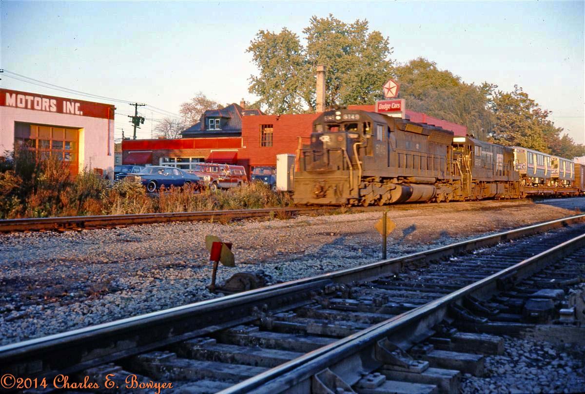 RE: Trains on this day in the past: - bdw9535 - 09-24-2022 Cresson, PA, 9/24/10. Bruce RE: Trains on this day in the past: - Charlie B - 09-24-2022 9/24/2016 NKP 765 on the Cuyahoga Valley. RE: Trains on this day in the past: - Charlie B - 09-25-2022 Westbound at MP 50, Conrail train PR7 (still using the old symbols at the time) Charlie Charlie RE: Trains on this day in the past: - Charlie B - 09-26-2022 This September 1978 photo of a short eastbound TV train is a good example of things that are gone. No more caboose, no more signal bridge, and containers have pretty much replaced trailers. Charlie RE: Trains on this day in the past: - Charlie B - 09-27-2022 September, 1978. West Bridgewater, Pa. RE: Trains on this day in the past: - Canadian Atlantic Railway - 09-27-2022 Was the 77 a ex QNSL unit Charlie? RE: Trains on this day in the past: - Charlie B - 09-27-2022 (09-27-2022, 06:59 PM)Canadian Atlantic Railway Wrote: Was the 77 a ex QNSL unit Charlie? C A R, it was built in 1954 for the Bangor and Aroostook. I can't see any reference to it ever being on the QNSL. Charlie RE: Trains on this day in the past: - Charlie B - 09-28-2022 September 28, 1980. The Chessie system Safety Express along the Ohio River near Hannibal. Charlie RE: Trains on this day in the past: - doctorwayne - 09-28-2022 That's some ugly-looking smoke Charlie...I wonder what they're using for fuel. The brown colour, to me, at least, suggests maybe cow-pies or horse-buns. Is that a Chessie Berk in charge there, or a loaner from the Nickel Plate? Wayne RE: Trains on this day in the past: - TMo - 09-28-2022 The "77" proves that the old things aren't ALL gone! RE: Trains on this day in the past: - Charlie B - 09-28-2022 (09-28-2022, 10:07 AM)doctorwayne Wrote: That's some ugly-looking smoke Charlie...I wonder what they're using for fuel. The brown colour, to me, at least, suggests maybe cow-pies or horse-balls. Hi Wayne. That locomotive is a Greenbrier class C&O locomotive, and the smoke has the golden glow because it was taken at sunset. Charlie RE: Trains on this day in the past: - bdw9535 - 09-28-2022 Conrail's MI-21 at Millville, NJ, 9/28/16. Bruce RE: Trains on this day in the past: - Charlie B - 09-29-2022 This is an interesting picture taken at Summit cut late September, 1978. The locomotive is on a work train. Take note of the details, especially the paint on the handrails. Nice weathering job but the paint isn't prototype