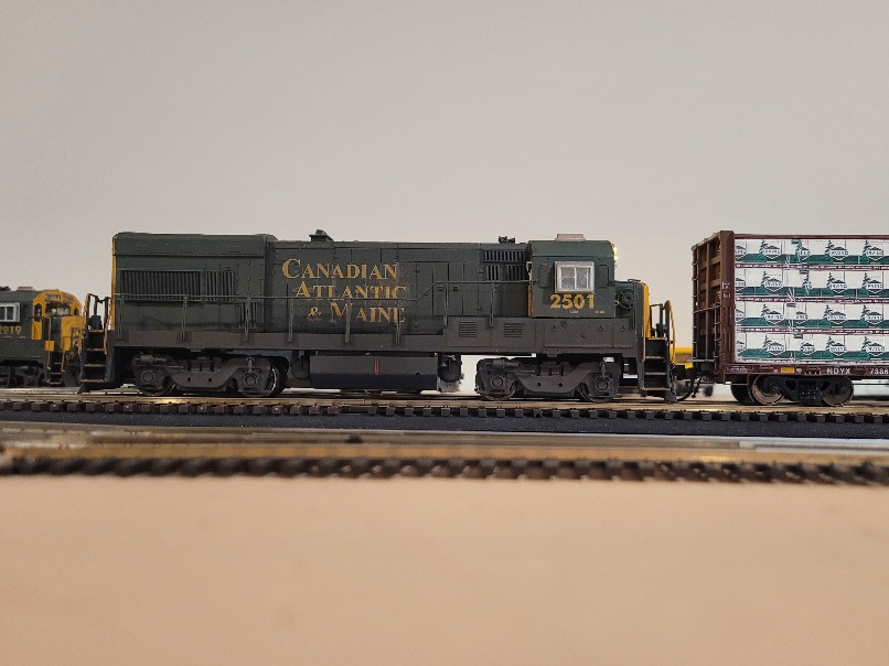 RE: SIDE SHOT SATURDAY - cn nutbar - 01-14-2023 EG&E Berkshire #3002 RE: SIDE SHOT SATURDAY - Canadian Atlantic Railway - 01-14-2023 CAM U18B is the smallest unit on the combined Canadian Atlantic Railway roster. RE: SIDE SHOT SATURDAY - TMo - 01-14-2023 A beaten and weathered EL hopper headed south. RE: SIDE SHOT SATURDAY - Charlie B - 01-14-2023 After 30 years I have revived the Little Beaver Creek Valley Railroad. I was in charge of painting the big un in August of 1992. My major helper was a lad that had just turned 18 by the name of Michael Manwiller. ( https://www.linkedin.com/in/michael-manwiller-88424861) There were a couple days we had to knock off because it was too hot. The locomotive had to be ready for their train festival on September 21st. We finished up at 4AM that morning. I painted this BB Athearn just shortly after that and I figured it was time to make it go. The decals were printed on ink jet decal paper. I used clear for the black letters, but the Yellow had to be done on white decal paper I got as close as I could with the red around the letters. Some touch up is in order and minor repairs are to be made. The locomotive went to the Ohio Central but Jerry kept it in this paint. The G&W finally repainted it to their orange colors and it is still working in Georgia the last I heard. Charlie RE: SIDE SHOT SATURDAY - Canadian Atlantic Railway - 01-14-2023 (01-14-2023, 09:04 PM)Charlie B Wrote: After 30 years I have revived the Little Beaver Creek Valley Railroad. I was in charge of painting the big un in August of 1992. My major helper was a lad that had just turned 18 by the name of Michael Manwiller. ( https://www.linkedin.com/in/michael-manwiller-88424861) There were a couple days we had to knock off because it was too hot. The locomotive had to be ready for their train festival on September 21st. We finished up at 4AM that morning. That's a sharp looking unit Charlie. RE: SIDE SHOT SATURDAY - cn nutbar - 02-04-2023 Steam always will be king on the Leetown Division---here's a pair of "hogs" earning their keep. RE: SIDE SHOT SATURDAY - TMo - 02-04-2023 The classic lines of the RS36, and a classic paint scheme for the D&H. One of these days I have to get around to weathering both of mine. RE: SIDE SHOT SATURDAY - cn nutbar - 02-11-2023 CNR S1B Mikado #3254 southbound on the Stoney Creek Hill RE: SIDE SHOT SATURDAY - tompm - 02-11-2023