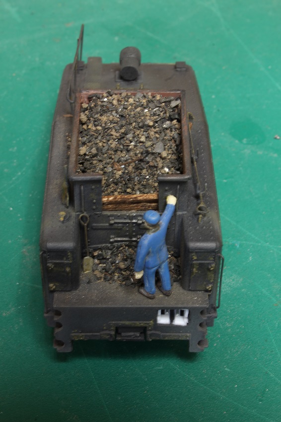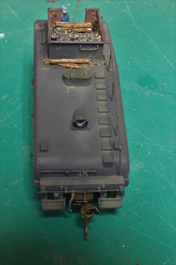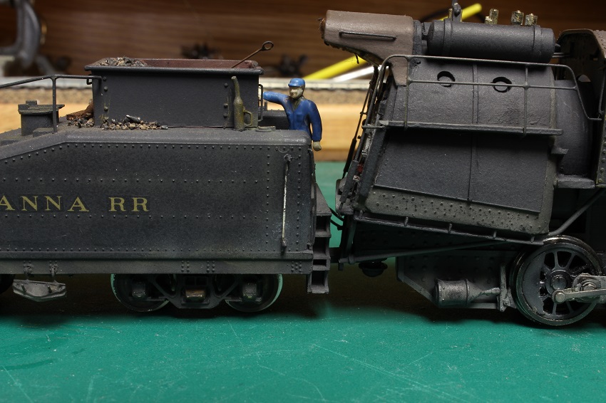 Now that I know the Led attached to the plastic filter, resistor, pick up arraignment works. I neatened it up and replaced the wire with something a little more flexible. This still left some trouble with the glue not holding well to the plastic lens, I broke it off a few times while working on the frame. My solution for this was good old J B weld. After the J B weld. And it still works. The underside all weathered up. Re: E-paw's Get off yer duff Challenge - e-paw - 03-28-2017 To continue on with tender Tuesday.......The tender trucks are all painted and weathered. The fireman was added, weathering finished, coal boards were I installed ( only two installed in the bunker, the rest stored on the tender deck for when she is toped off), And the Coal or "Clum" as in this case was glued onto the foam spacer in the bunker. Clum is a low grade of anthracite, straight out of the mine with little cleaning. It sometimes contained as much dirt and rock as it did coal. It was accost savings measure taken on by the reigns anthracite haulers towards the end of steam. Although it did burn it took extra skill on the part of the fireman to keep up a full head of steam with a tender full of this stuff. In some cases it was mixed with soft coal to improve its qualities. Re: E-paw's Get off yer duff Challenge - doctorwayne - 03-28-2017 Lookin' sharp, Steve! Like you, I view tenders to be just as interesting as the locomotives to which they're attached, and yours, with the fireman almost out in the elements with the coal, is especially able to display such virtues. Very nicely done! Wayne Re: E-paw's Get off yer duff Challenge - e-paw - 03-28-2017 Thanks doc.. maybe we should start a weekly photo thread called "Tender Tuesday" ? Complete, in progress, Old photos, or the real thing. Cause tenders are people too and deserve to be recognized for there service. Re: E-paw's Get off yer duff Challenge - Schraddel - 03-30-2017 Excellent done Steve! "Tender Tuesday" I am smiling, bue why not? ![]() Cheers Lutz Re: E-paw's Get off yer duff Challenge - e-paw - 03-31-2017 The end of this project is almost in sight... The cab now has an occupant. I tried to show how the cab interior came out in this one. I finished up the weathering on the business end of this engine. Re: E-paw's Get off yer duff Challenge - e-paw - 03-31-2017 One thing that I almost left out was the tenders sight glass. I borrowed this idea from the CNJ. It was common to see this on the CNJ steamers equipped with water scoops, so I figured why not put one on a switcher. It's placed on the engineer's side so that both crew members can see how much they have in the tank. I tried to simulate the calcium stains from steam leaks on the appliance mounted on top of the boiler. I do like the way the rivet decals worked out on this model, I did do lightly dry brush them to bring them out. In this pic you can see that they do match the rivets on the tender well. I also like how the + & - tender leads look like air lines , that was a "happy accident" that just worked out that way. Re: E-paw's Get off yer duff Challenge - doctorwayne - 03-31-2017 Nice finishing touches, Steve. Wayne Re: E-paw's Get off yer duff Challenge - faraway - 04-01-2017 The details and weathering is wonderful! Re: E-paw's Get off yer duff Challenge - Puddlejumper - 04-06-2017 Absolutely incredible. Such a magnificent model. Since you believe tenders deserve recognition, did you number yours? I always thought it was really neat that the PRR numbered the tenders. As built, the tender was numbered the same as the locomotive it was attached to, but over the years tenders were swapped around. After years of service, locomotives and tenders were not necessarily numbered the same. Examples of this can be found at the Railroad museum of Pennsylvania where A4s 0-4-0 #94 has tender #953. I'm sure this happened quite often, and not just on PRR. Looking great!! Dave Re: E-paw's Get off yer duff Challenge - Mike Kieran - 04-07-2017 John Allen used to number the locomotives and put G&D lettering on the tenders for that reason. Great work on the Camelback. It's an awesome model. Re: E-paw's Get off yer duff Challenge - e-paw - 04-07-2017 Thanks all, I did number this tender as the smaller engines did not normally swap tenders around on the SH&D. Tender swapping was reserved for road engines on the Anna lines where it served a more economical purpose. I actually can swap tenders around to a certain extent, but normally don't, for fear of scratching the paint or braking off some detail part. The Reading and CNJ took tender swapping to an art form, changing tenders around frequently. This was normally done with tenders of different capacities for engines of the same class. Things like different Stokers, if they had them, and if the engine was equipped with a feed water heater can effect what tenders are compatible with what engines. Also lifting vs. non lifting injectors can sometimes factor in . |