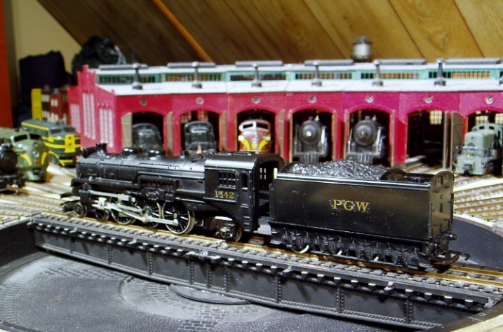 Re: Action at the roundhouse - MasonJar - 04-05-2011 Thanks. That makes sense. I really like the 6-drivered locos although the Mogul is one I don't have on my roster (yet) ![]() #86 features prominently in Ian Wilson's Steam Over Palmerston. Andrew Re: Action at the roundhouse - toptrain - 04-13-2011 * Here A CN Pacific 1542 takes a ride on the Frankford turntable. It is a Pennsylvania Great Western locomotive. Re: Action at the roundhouse - cn nutbar - 04-14-2011 Toptrain---thank you for posting the photos of your roundhouse and locomotives---it's always a treat when other members post shots of their facilities.Actually I think your Pacific is a Canadian Pacific locomotive as the recessed headlight was a distinguishing feature on many of their steam roster |